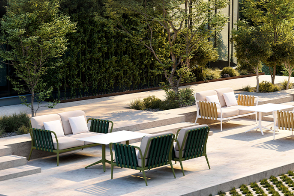 Rooted in Valencian heritage, Ribbons draws inspiration from handcrafted wicker furniture and classic weaving techniques. Rather than replicating tradition, the collection translates it into a modular system that feels familiar yet distinctly modern. Conceived specifically for the contract channel, Ribbons is positioned as a statement collection that balances character, comfort and robustness, making it suitable for both private gardens and high-traffic outdoor environments.